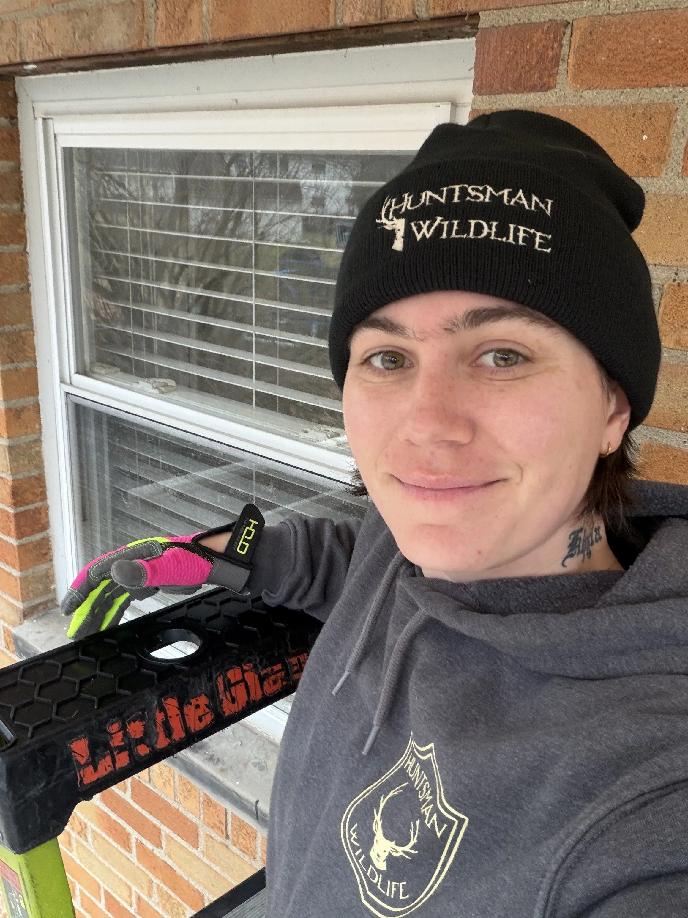 Hannah joined the Huntsman Wildlife team in the Fall of 2025. Coming with a property management/maintenance background, Hannah joined Huntsman hoping to make a more resounding impact with her clients and help the community resolve the wildlife conflicts they struggle with.